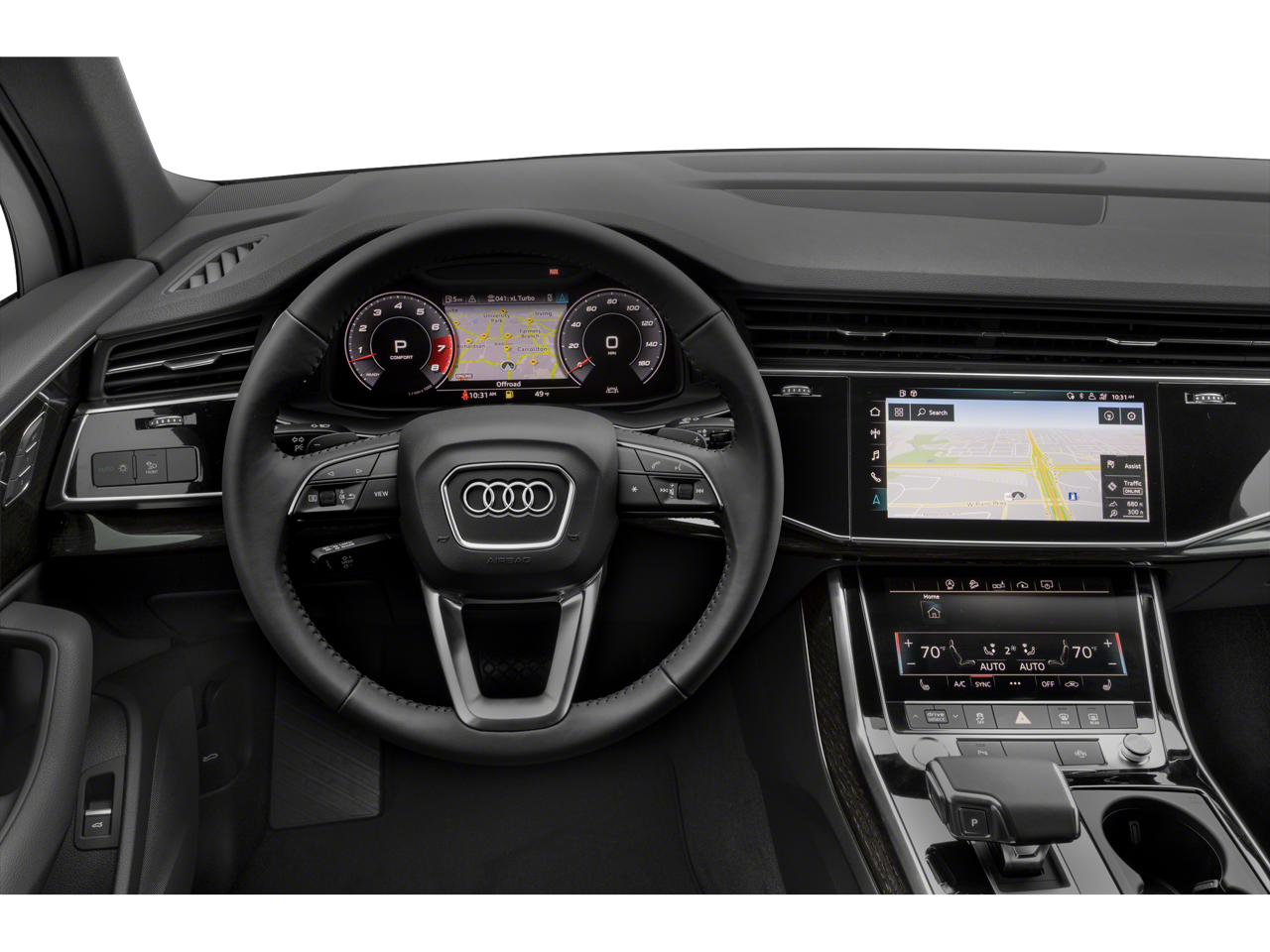 - Radio: Audi Sound System -inc: Audi smartphone interface (wired Android Auto and wireless Apple CarPlay), MMI navigation plus w/MMI touch response - 10.1" upper, 8.6" lower screen, preparation for mobile phone (Bluetooth®) and SIRIUS satellite radio (w/3-month complimentary subscription)