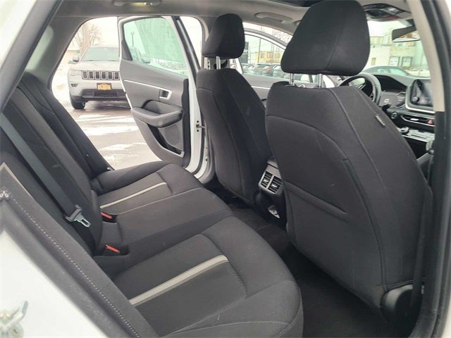 Quartz White 2022 Hyundai Sonata SEL FWD 8-Speed Automatic with SHIFTRONIC 2.5L I4 Sonata SEL, 4D Sedan, 2.5L I4, 8-Speed Automatic with SHIFTRONIC, FWD, Quartz White, Black Cloth, 12.3 LCD Instrument Cluster, 17 x 7.0J Aluminum Alloy Wheels, 2nd Row Air Vent, 2nd Row USB Charge Port, 4-Wheel Disc Brakes, Alloy wheels, Apple CarPlay & Android Auto, Auto High-beam Headlights, Auto-Dimming Rear-View Mirror, Automatic temperature control, Brake assist, Cargo Block, Cargo Side Bins, Convenience Package, Driver vanity mirror, Electronic Stability Control, Emergency communication system: Blue Link Connected Car Service (3-year complimentary subscription), Exterior Parking Camera Rear, First Aid Kit, Four wheel independent suspension, Fully automatic headlights, Heated front seats, Hyundai Digital Key, Illuminated entry, Leather-Wrapped Steering Wheel, LED Interior Lights, Option Group 02, Panoramic Sunroof, Power driver seat, Power windows, Preferred Accessory Package, Premium Cloth Seating Surfaces, Radio: AM/FM/MP3/HD/SiriusXM Display Audio, Remote keyless entry, Security system, Tachometer, Turn signal indicator mirrors, Wireless Device Charging.