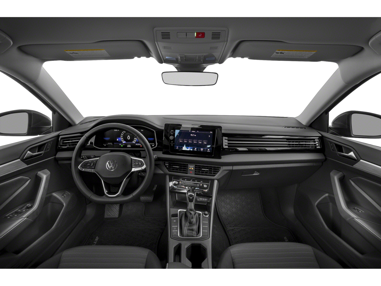 Gray 2025 Volkswagen Jetta 1.5T S FWD 8-Speed Automatic with Tiptronic 1.5L I-4 DI DOHC Turbocharged Jetta 1.5T S, 4D Sedan, 1.5L I-4 DI DOHC Turbocharged, 8-Speed Automatic with Tiptronic, FWD, Gray, Titan Black Cloth, Active Blind Spot Monitor, Alloy wheels, Automatic temperature control, Bumpers: body-color, Driver door bin, Electronic Stability Control, Exterior Parking Camera Rear, Front anti-roll bar, Front Center Armrest, Front dual zone A/C, Fully automatic headlights, Leather Shift Knob, Passenger vanity mirror, Power steering, Radio: MIB3 Composition Color w/8 Touchscreen, Rain sensing wipers, Remote keyless entry, Speed-sensing steering, Split folding rear seat, Wheels: 16 2-Tone Machined Alloy.